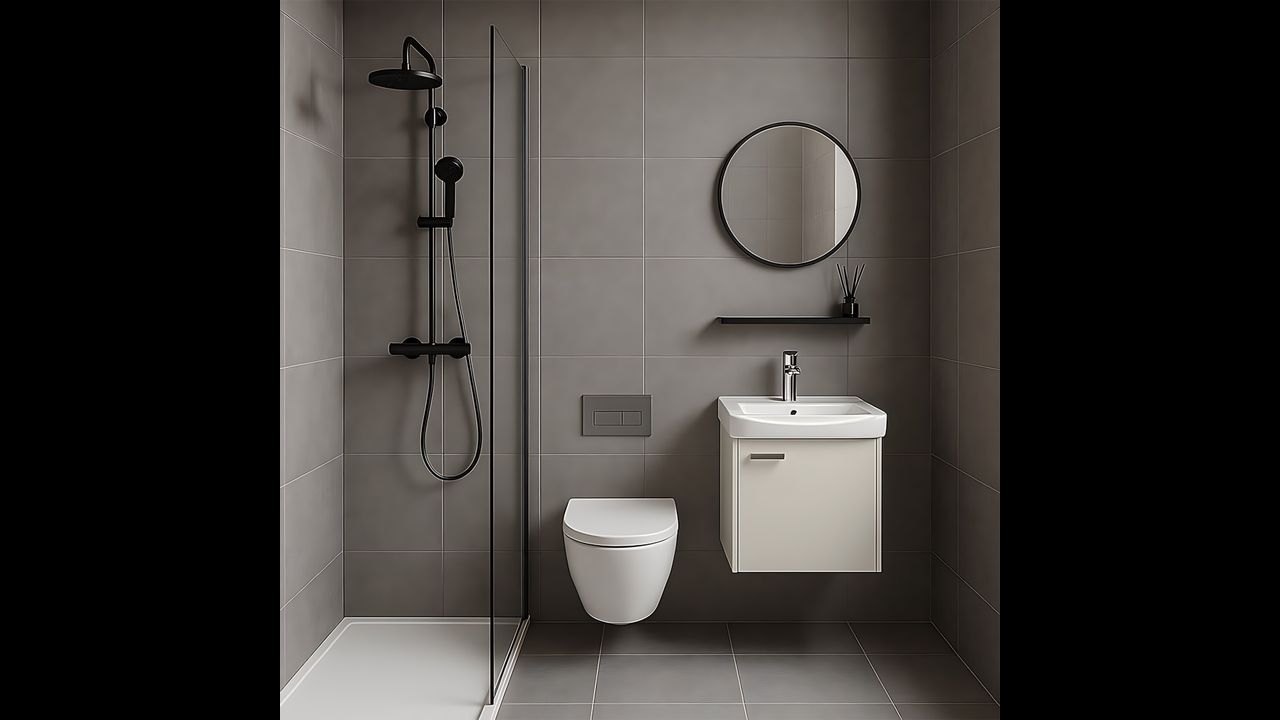 Hängende Konstruktion erleichtert das Putzen im Bad und verleiht dem Raum visuelle Leichtigkeit.