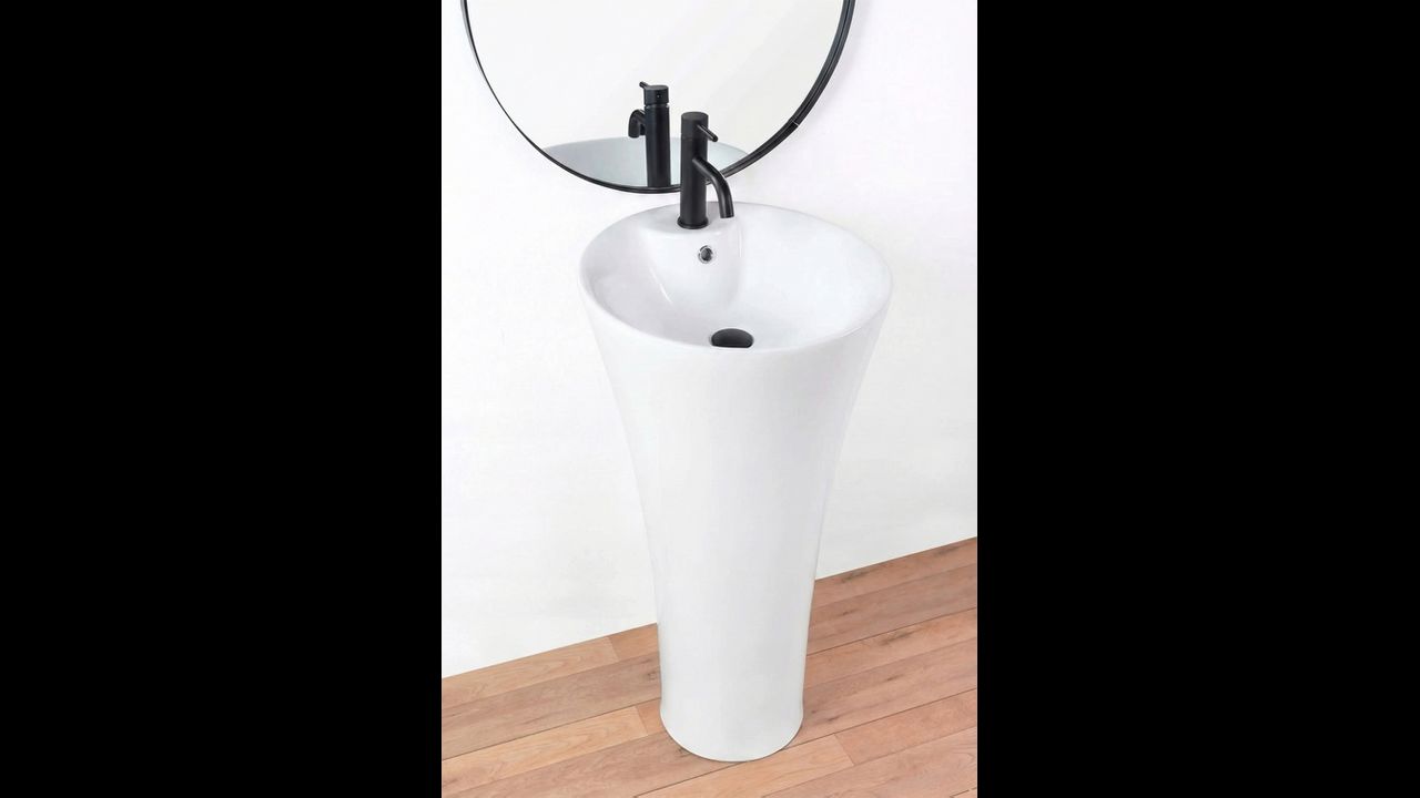 Freistehender Keramik-Waschtisch Agnes, monolithisch, aus hochwertiger Keramik mit einem Überlauf in Silber.